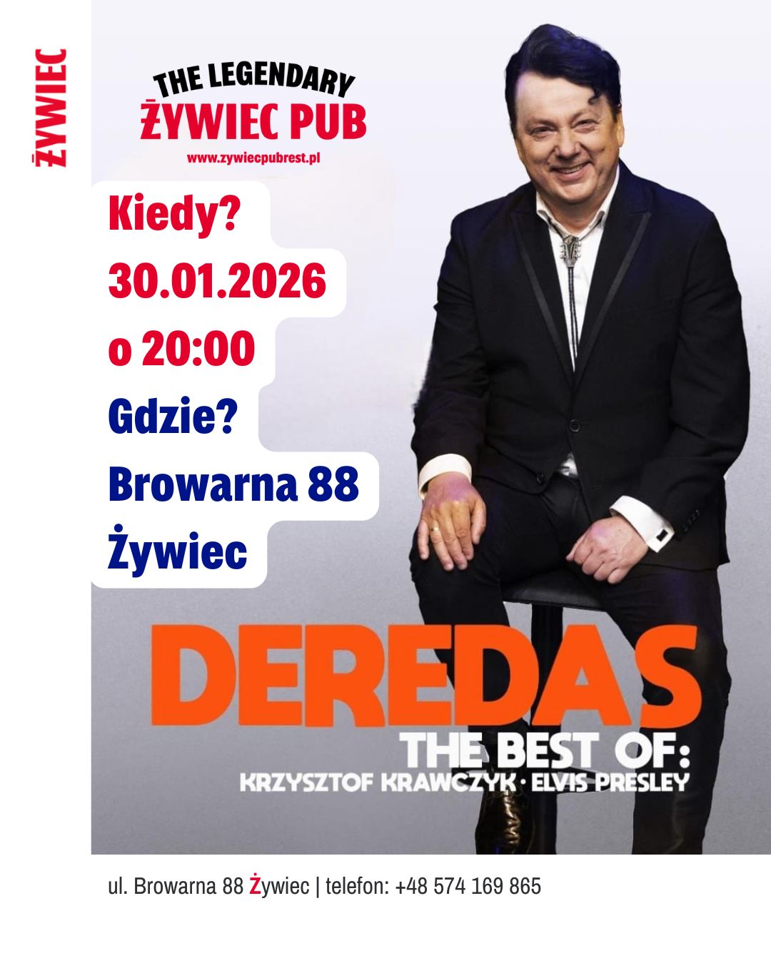 Artysta, którego głos i interpretacje zachwycają publiczność w całej Polsce, zaprezentuje największe przeboje Krzysztofa Krawczyka – od wzruszeń po energię, którą czuć od pierwszych dźwięków.
